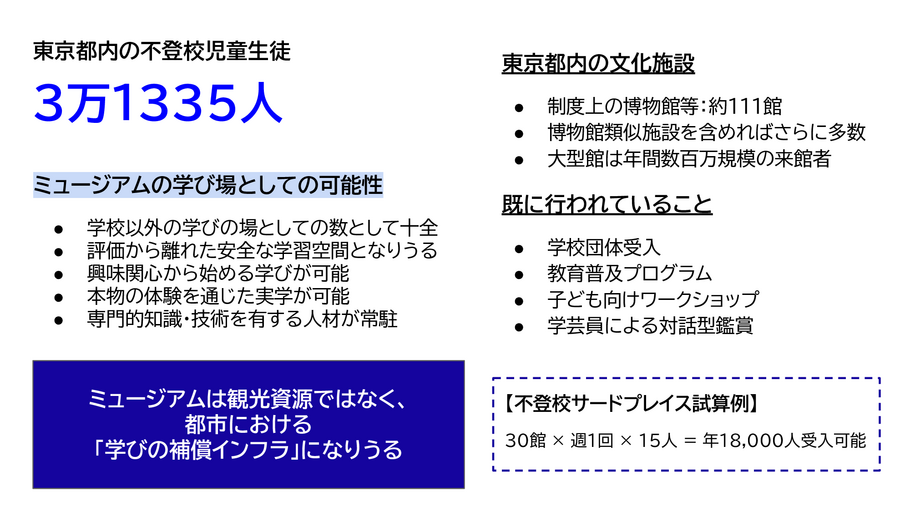 文化の再定義子どもの命地球社会基盤ROCKET異才発掘プロジェクト東京大学日本財団不登校児童生徒読み書き困難多様な学び伝統芸能工芸AI教育サードプレイス美術館博物館文化施設鉱山都市地球人育成身体性創造性学習保障地質産業文化国際交流東京大学先端研伝統工芸AI時代の教育ミュージアム科学館水族館創造の循環教育機会地球資源学びの補償インフラ