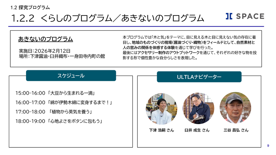 三重県立みえ四葉ヶ咲中学校探究学習プログラムみえULTLAプログラムアセスメント業務ワークショップ研修くらしのプログラムあきないのプログラム体験型学習地域資源活用高田専修寺下津醤油臼井織布一身田寺内町プログラム事後アンケート教育効果事業報告書アセスメント木と気醤油づくり織物万華鏡づくり生徒アンケート教員アンケート