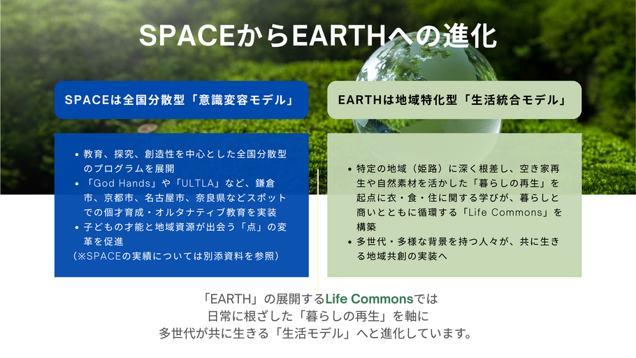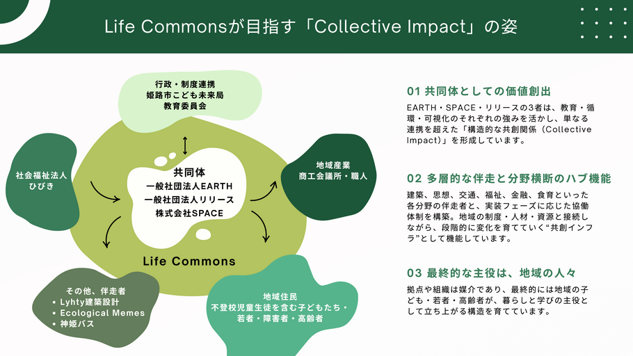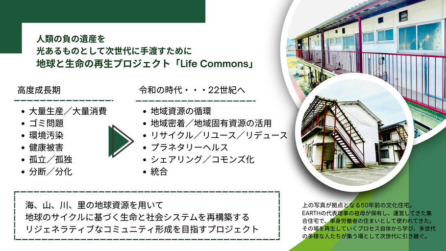 Life CommonsプロジェクトEARTHSPACE2025Collective Impactエコロジカル持続可能性地球環境宇宙開発コミュニティ社会変革イノベーション未来社会住宅人口問題高齢化コレクティブインパクト地域開発未来都市社会課題